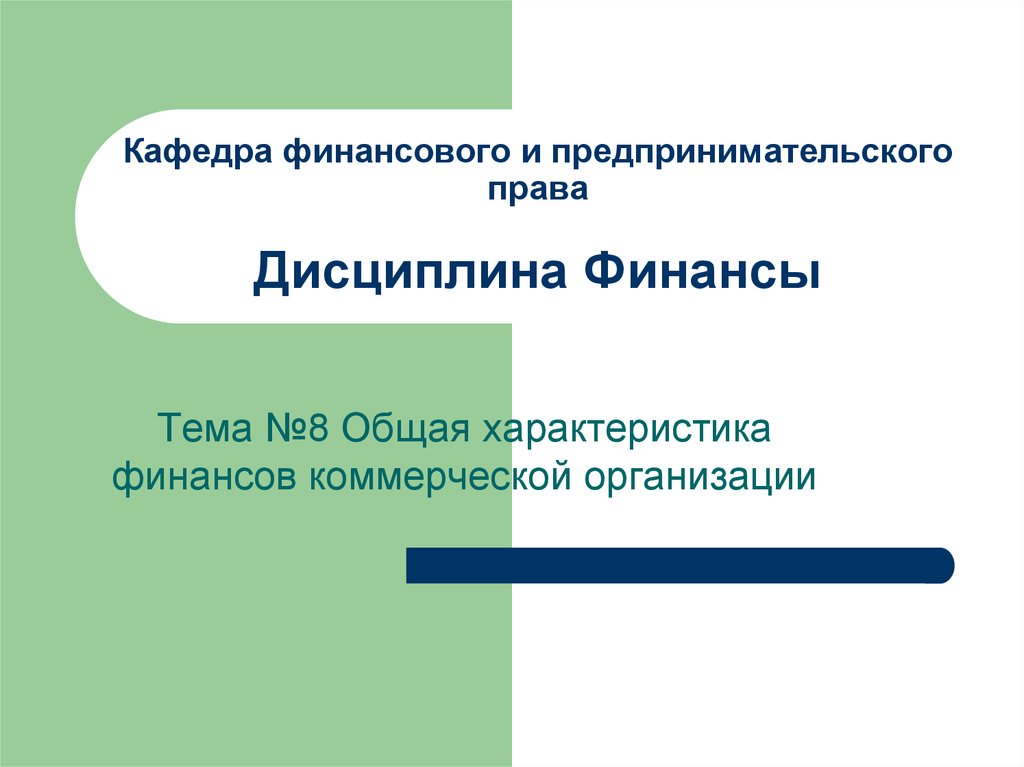 Тема №8 Общая характеристикафинансов коммерческой организации