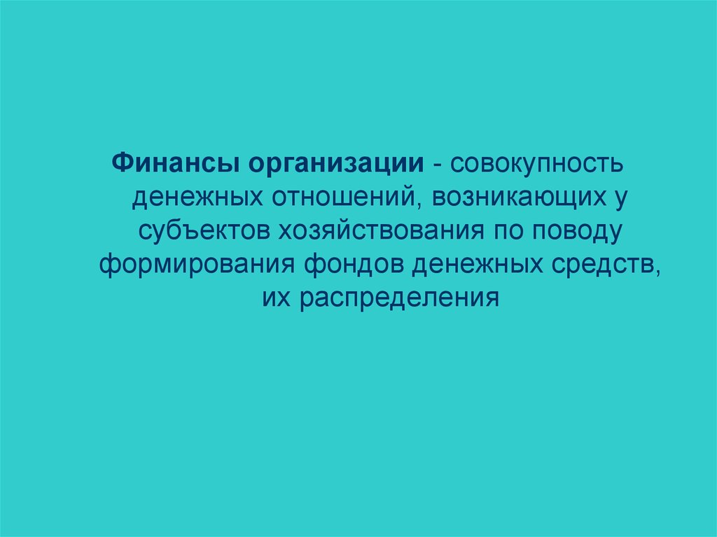 Финансы организации - совокупностьденежных отношений, возникающих у