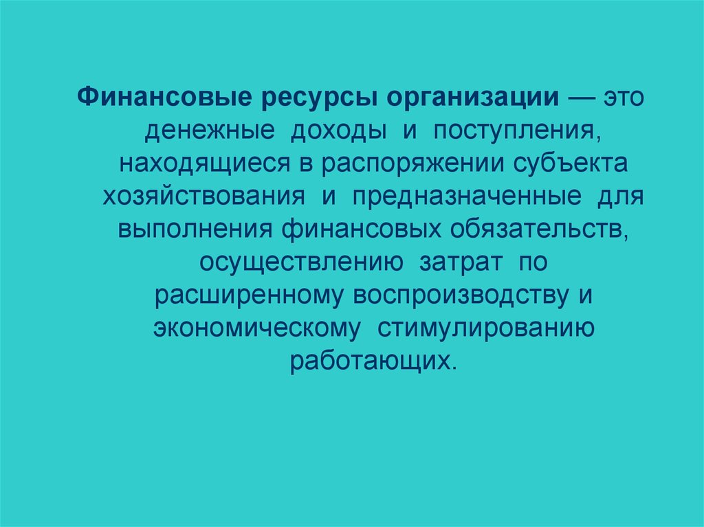 Финансовые ресурсы организации — этоденежные доходы и поступления,