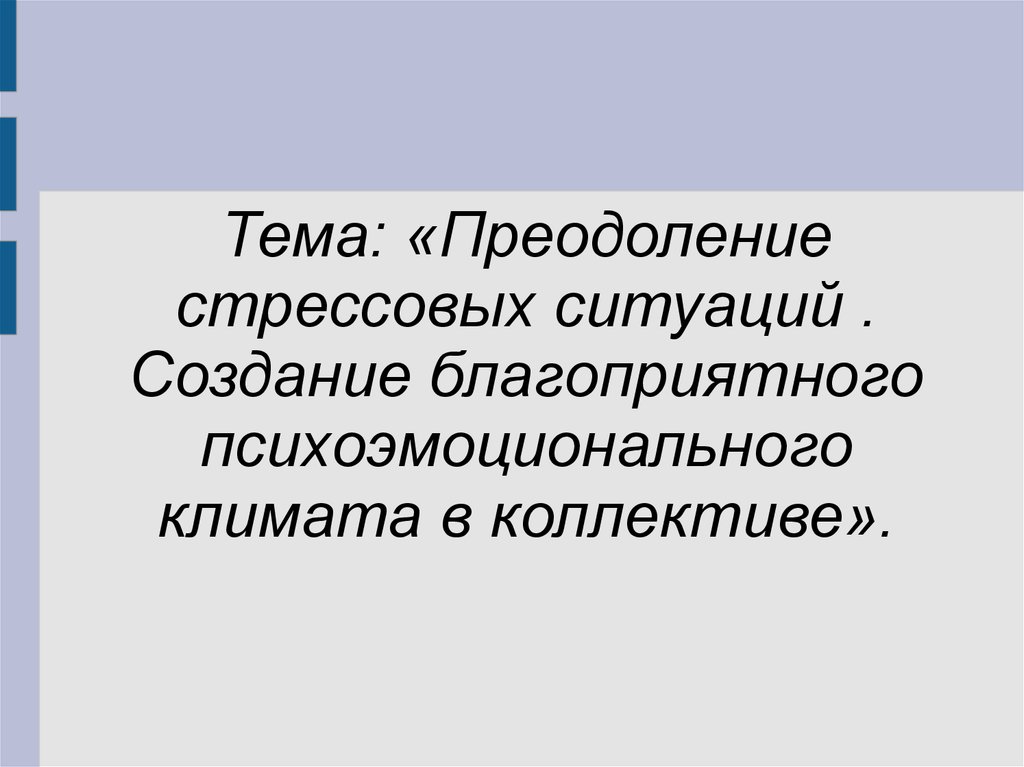 Преодоление стрессовых ситуаций. Создание благоприятного психоэмоционального климата в коллективе