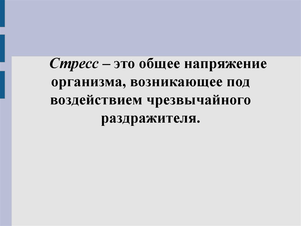 Стресс – это общее напряжениеорганизма, возникающее под