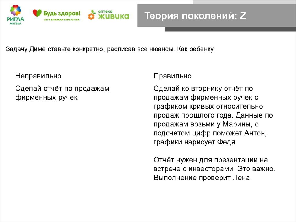 Теория поколений: ZЗадачу Диме ставьте конкретно, расписав все нюансы. Как ребенку.