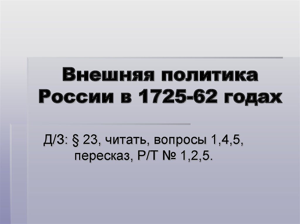 1. Внешняя политика России в 1725-62 годах
