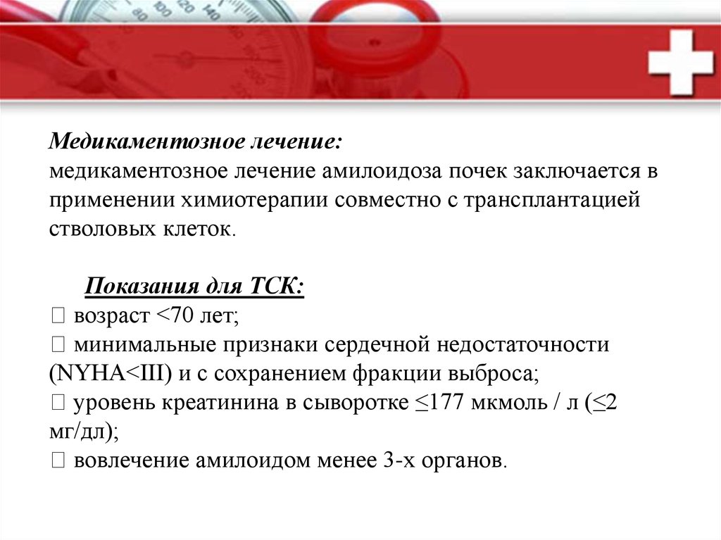 Медикаментозное лечение:медикаментозное лечение амилоидоза почек заключается в