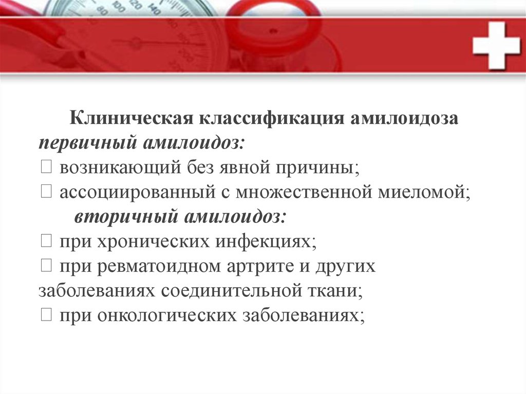 Клиническая классификация амилоидозапервичный амилоидоз: