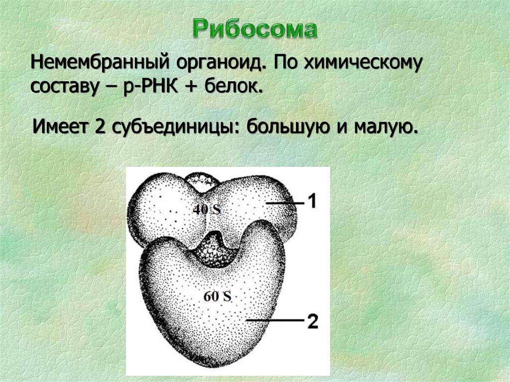 Немембранный органоид. По химическомусоставу – р-РНК + белок.