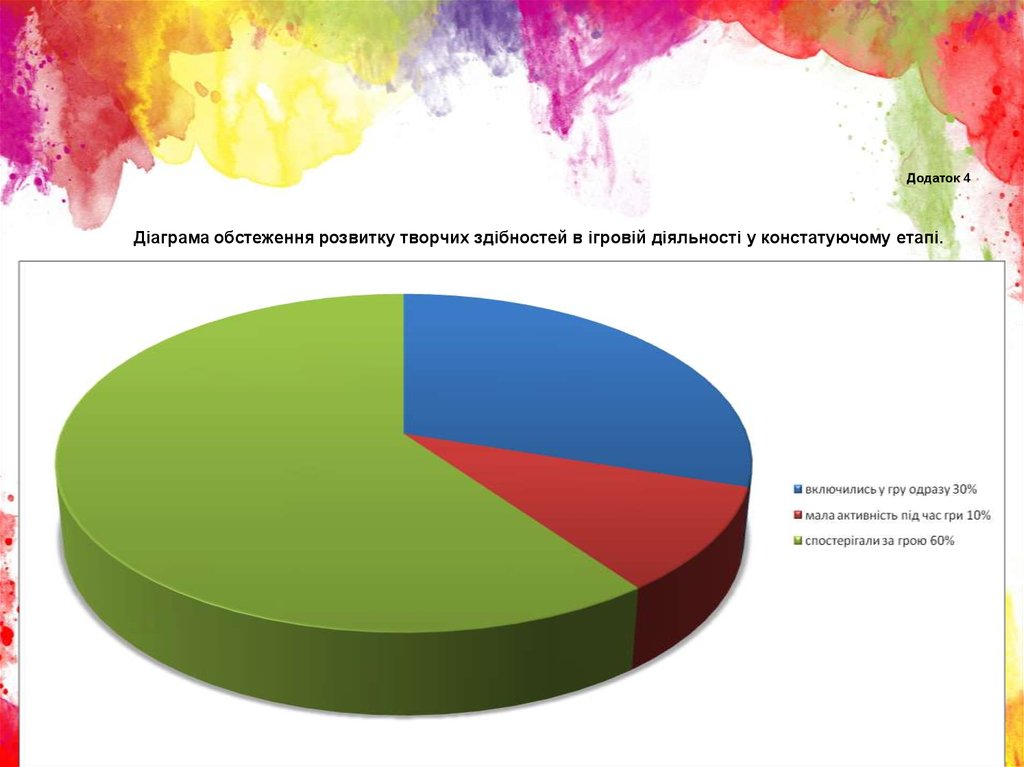 Додаток 4Діаграма обстеження розвитку творчих здібностей в ігровій діяльності у констатуючому етапі.