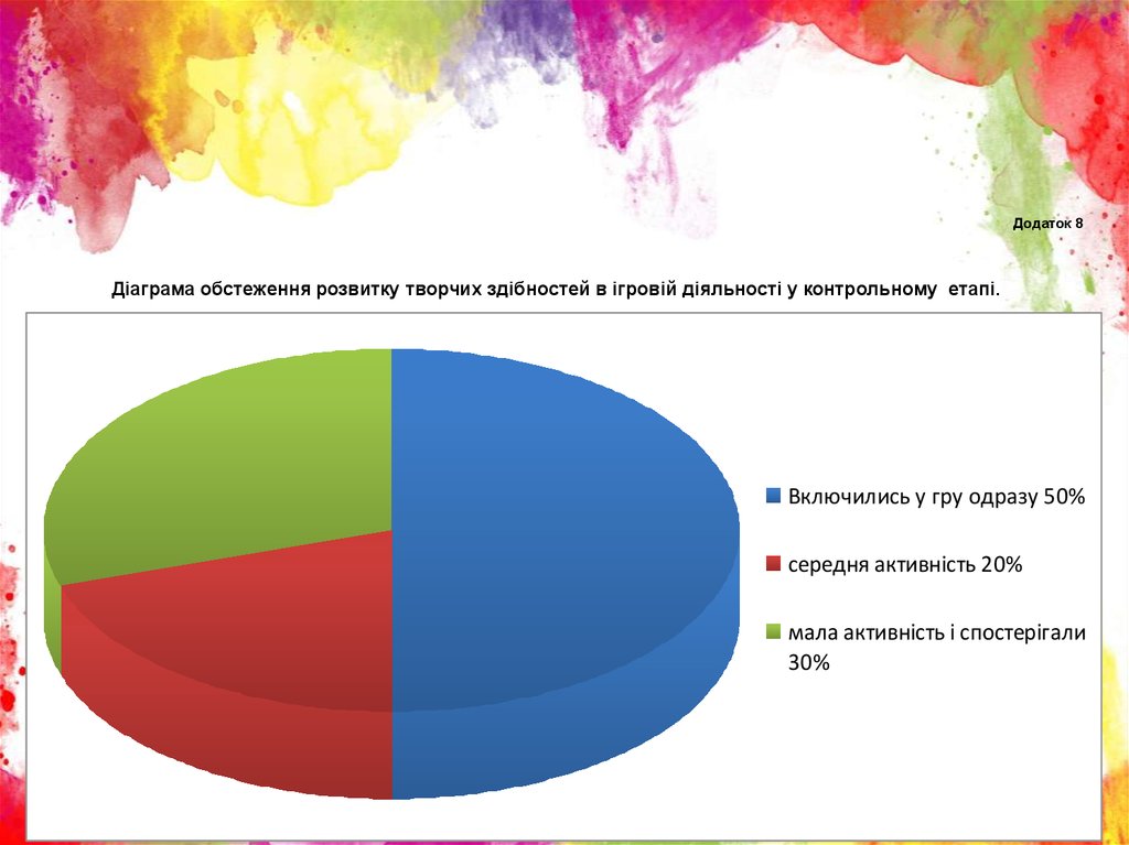 Додаток 8Діаграма обстеження розвитку творчих здібностей в ігровій діяльності у контрольному етапі.
