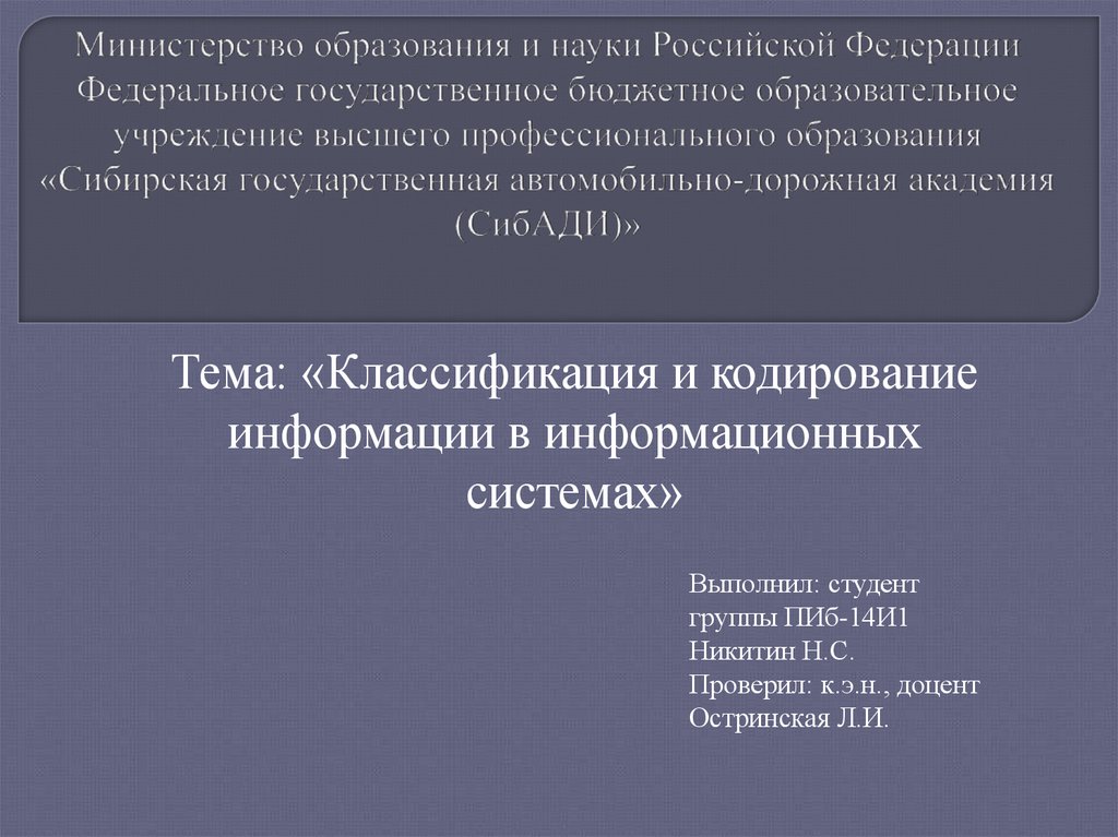 1. Министерство образования и науки Российской Федерации Федеральное государственное бюджетное образовательное учреждение высшего