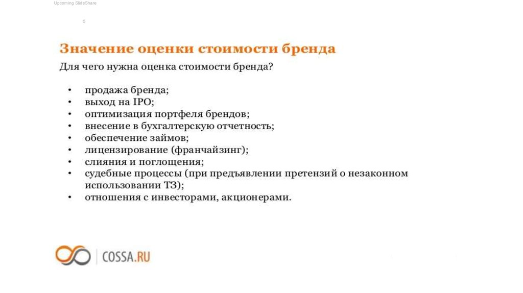 Оценка стоимости бренда