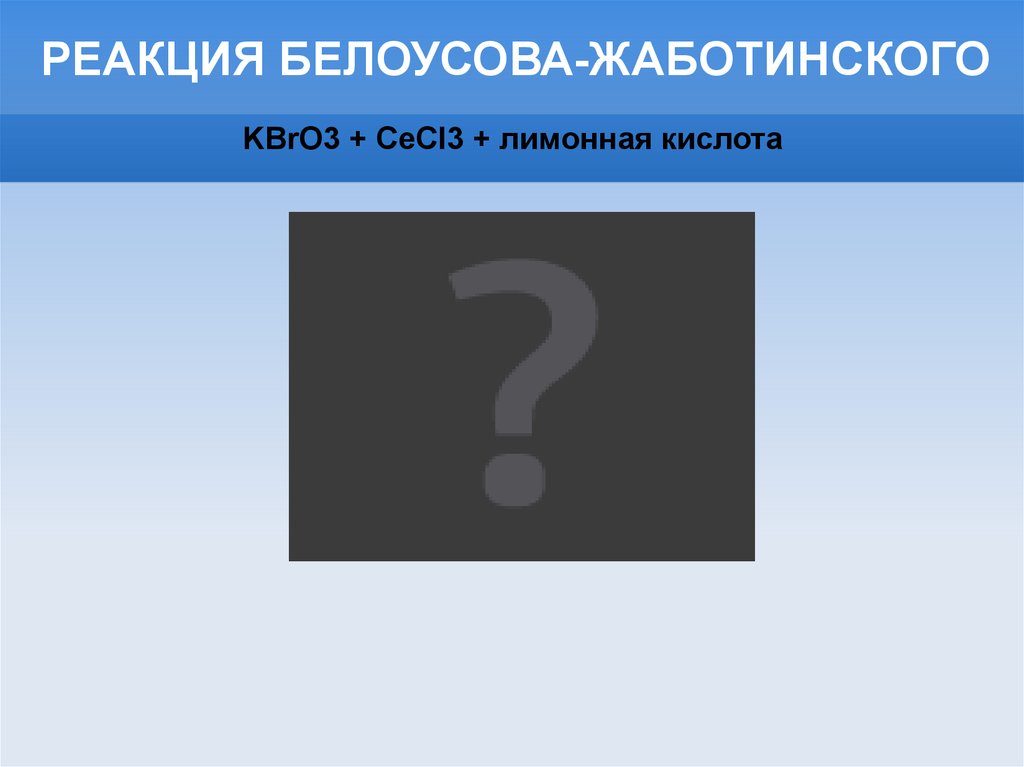 РЕАКЦИЯ БЕЛОУСОВА-ЖАБОТИНСКОГОKBrO3 + CeCl3 + лимонная кислота