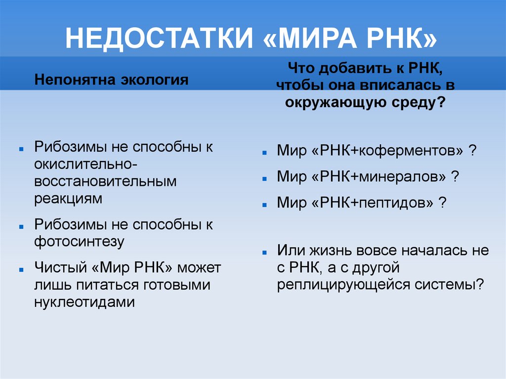 НЕДОСТАТКИ «МИРА РНК»Что добавить к РНК,