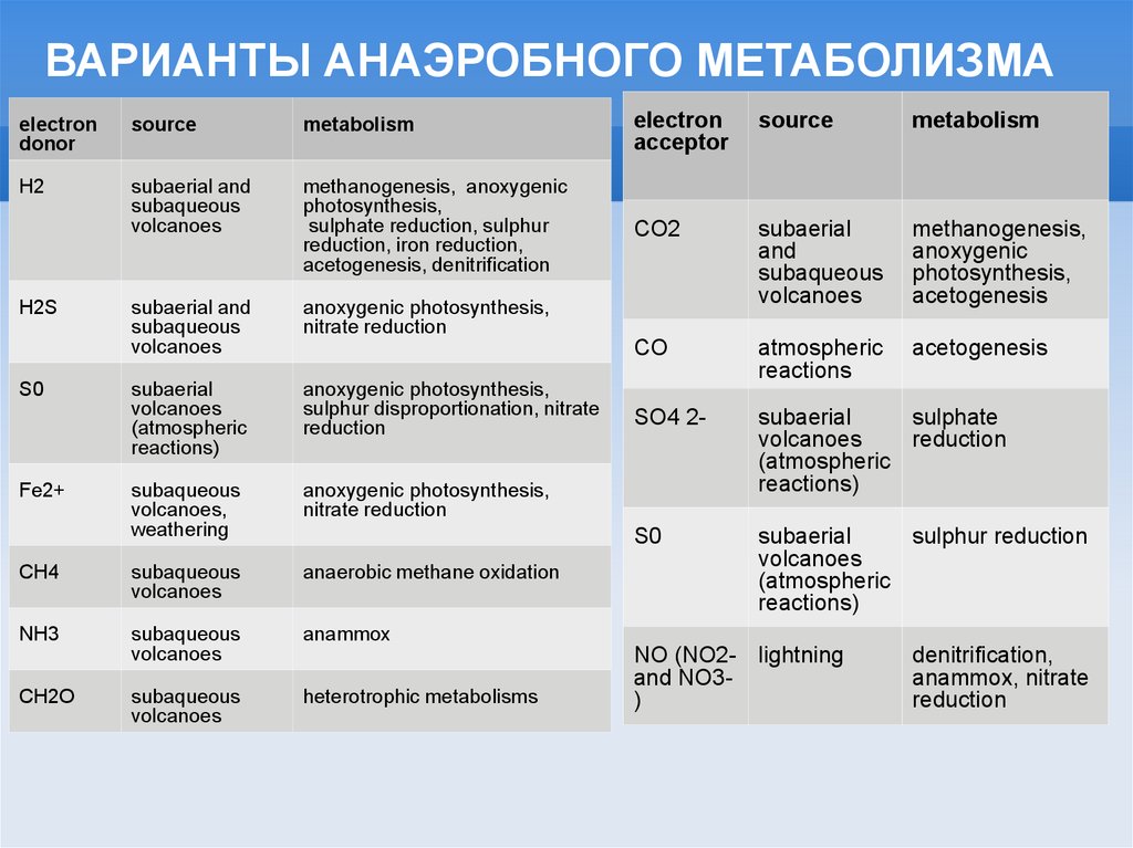 ВАРИАНТЫ АНАЭРОБНОГО МЕТАБОЛИЗМАelectron