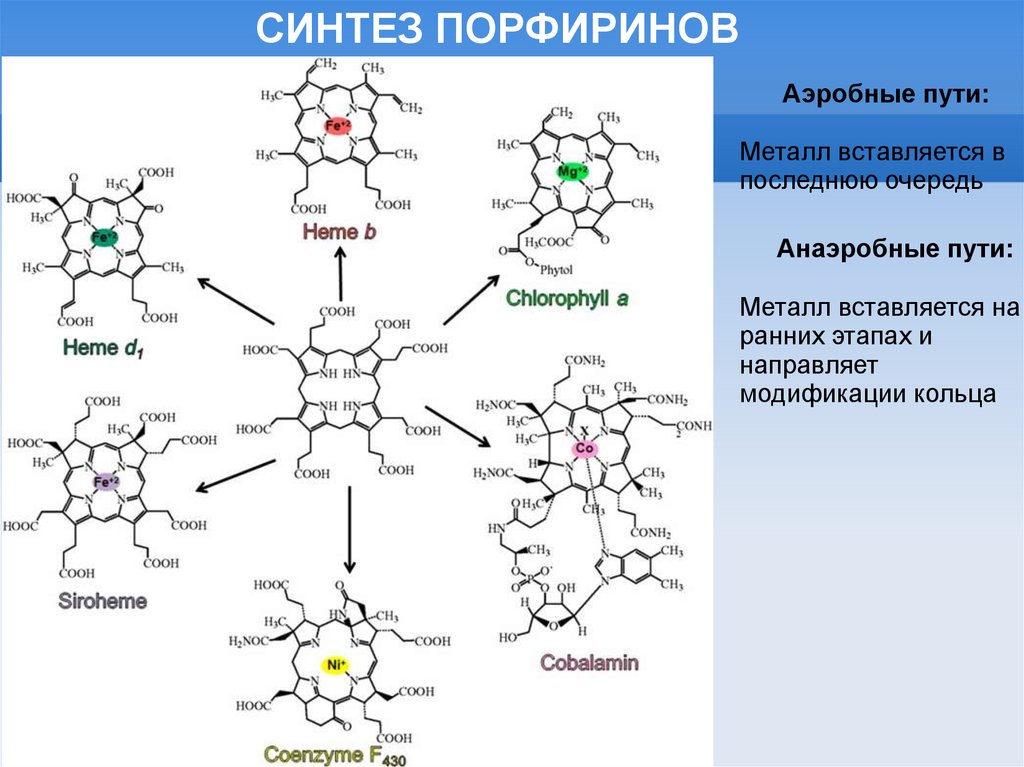 СИНТЕЗ ПОРФИРИНОВАэробные пути:
