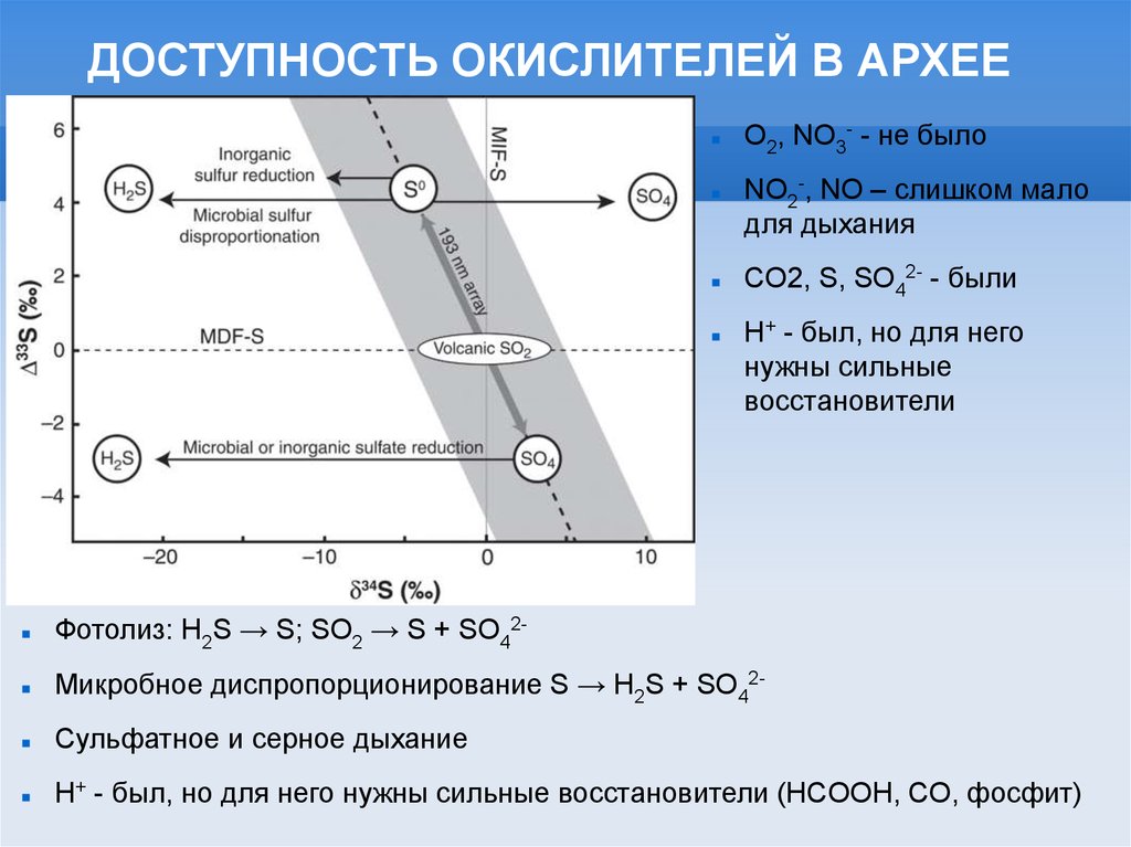 ДОСТУПНОСТЬ ОКИСЛИТЕЛЕЙ В АРХЕЕO2, NO3- - не было