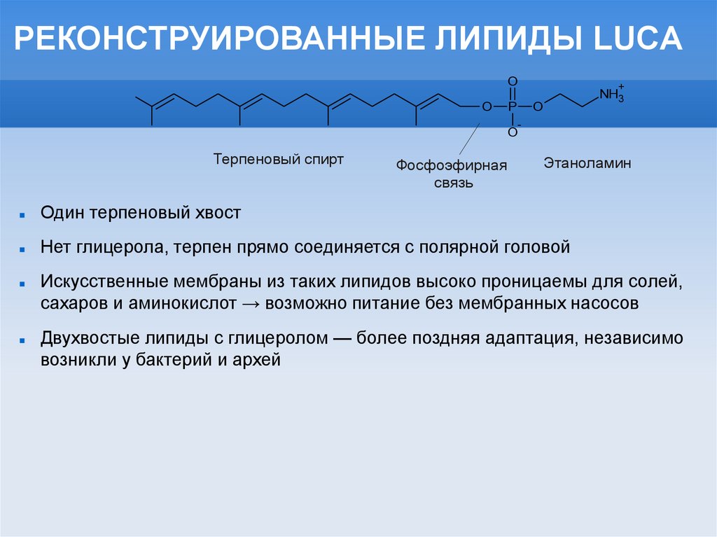 Двухвостые липиды с глицеролом — более поздняя адаптация, независимо