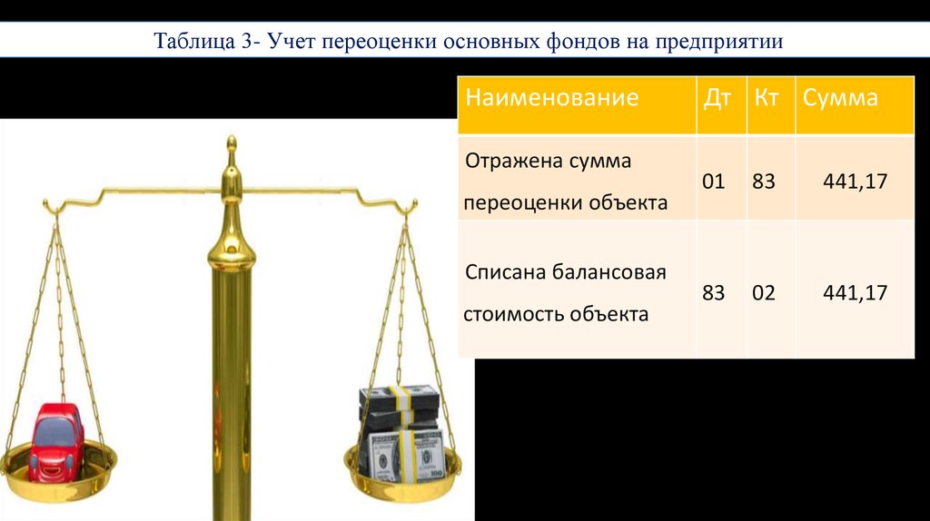 Таблица 3- Учет переоценки основных фондов на предприятииНаименование