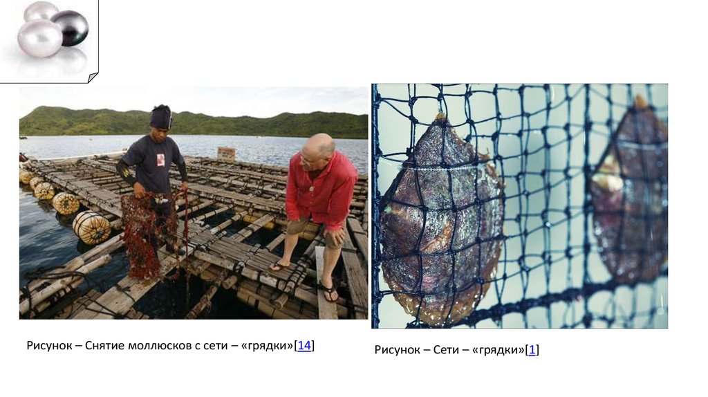 Рисунок – Снятие моллюсков с сети – «грядки»[14]Рисунок – Сети – «грядки»[1]