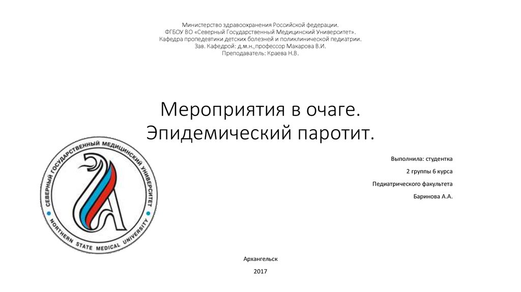 1. Министерство здравоохранения Российской федерации. ФГБОУ ВО «Северный Государственный Медицинский Университет». Кафедра