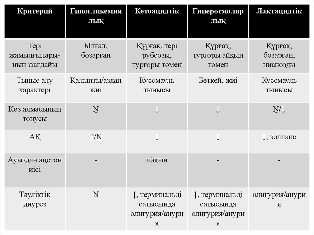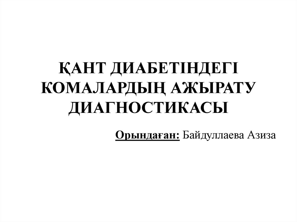 1. ҚАНТ ДИАБЕТІНДЕГІ КОМАЛАРДЫҢ АЖЫРАТУ ДИАГНОСТИКАСЫ