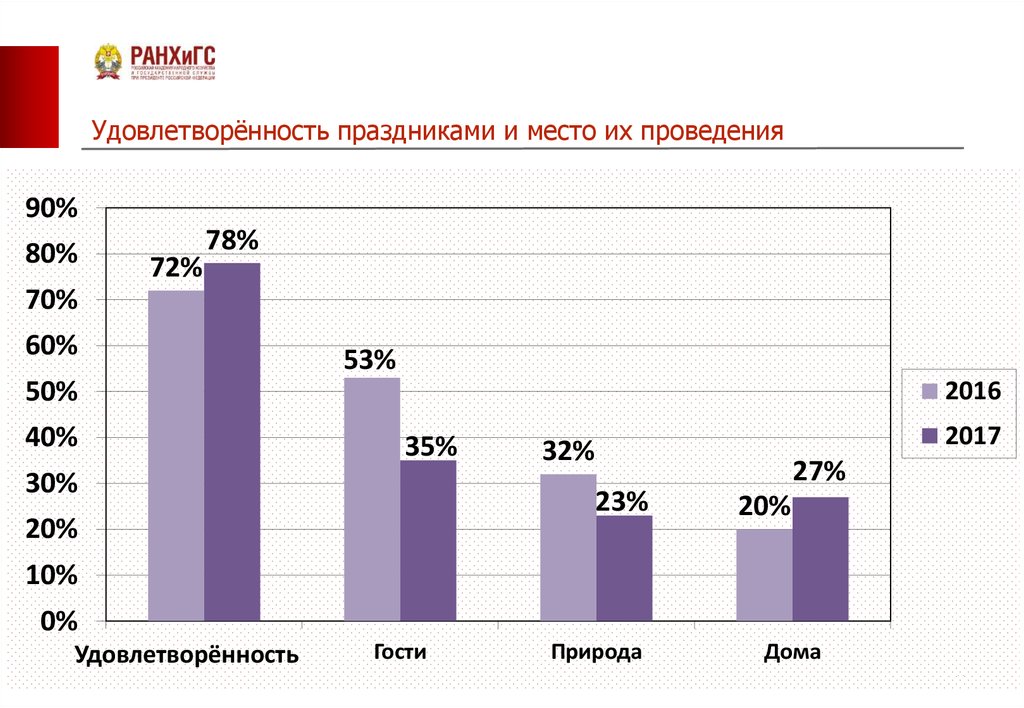 Удовлетворённость праздниками и место их проведения90%