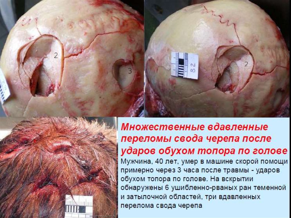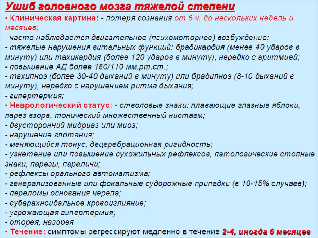 ушибы и сдавление головного мозга (30-40 случаев