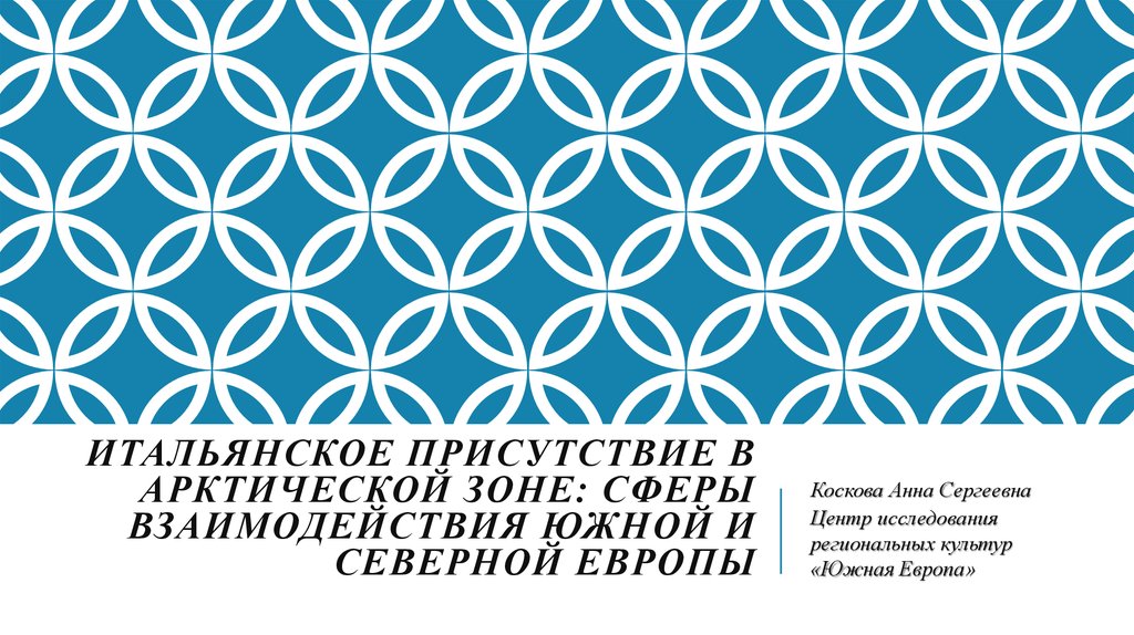 1. ИТАЛЬЯНСКОЕ ПРИСУТСТВИЕ В АРКТИЧЕСКОЙ ЗОНЕ: СФЕРЫ Взаимодействия ЮЖНОЙ И СЕВЕРНОЙ ЕВРОПЫ