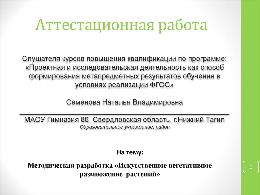 Аттестационная работа. Методическая разработка «Искусственное вегетативное размножение растений»