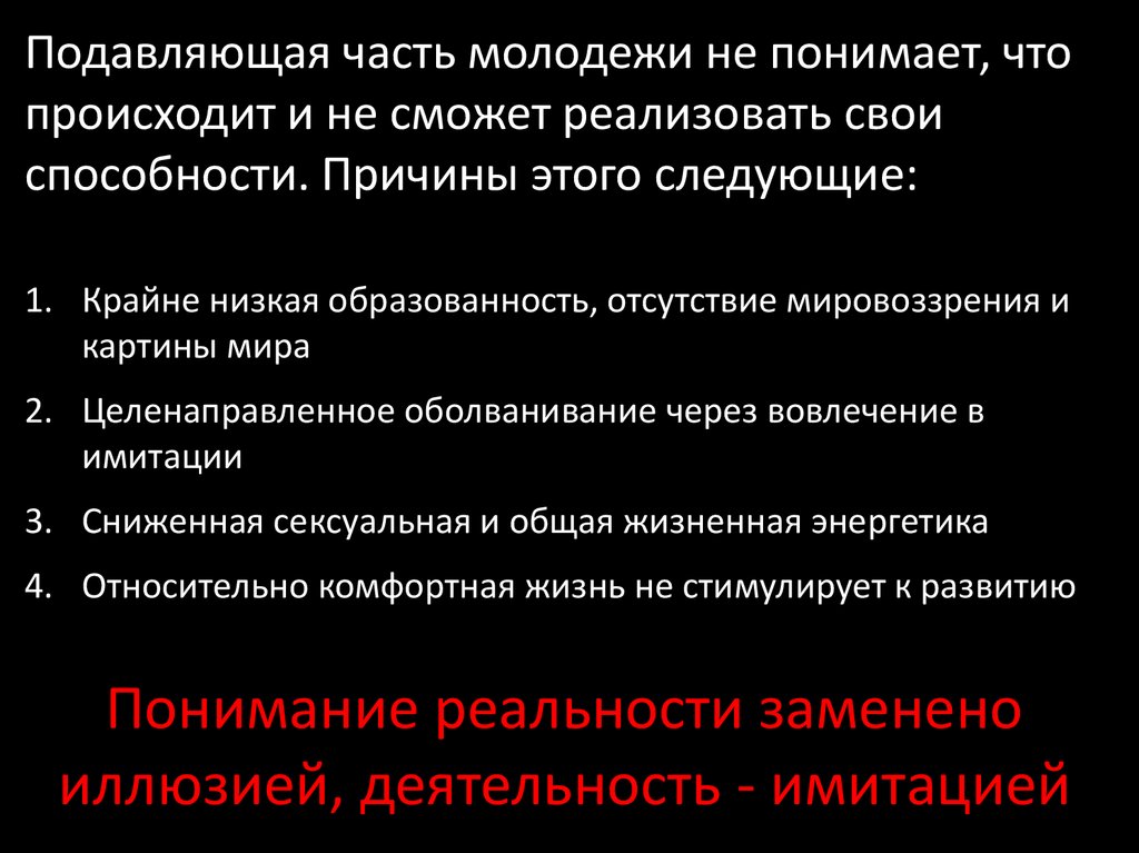 Подавляющая часть молодежи не понимает, чтопроисходит и не сможет реализовать свои