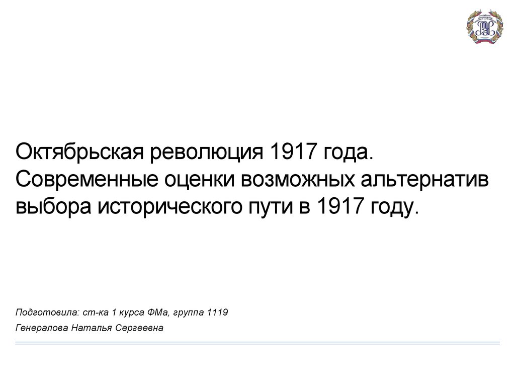 Октябрьская революция 1917 года.Современные оценки возможных альтернатив