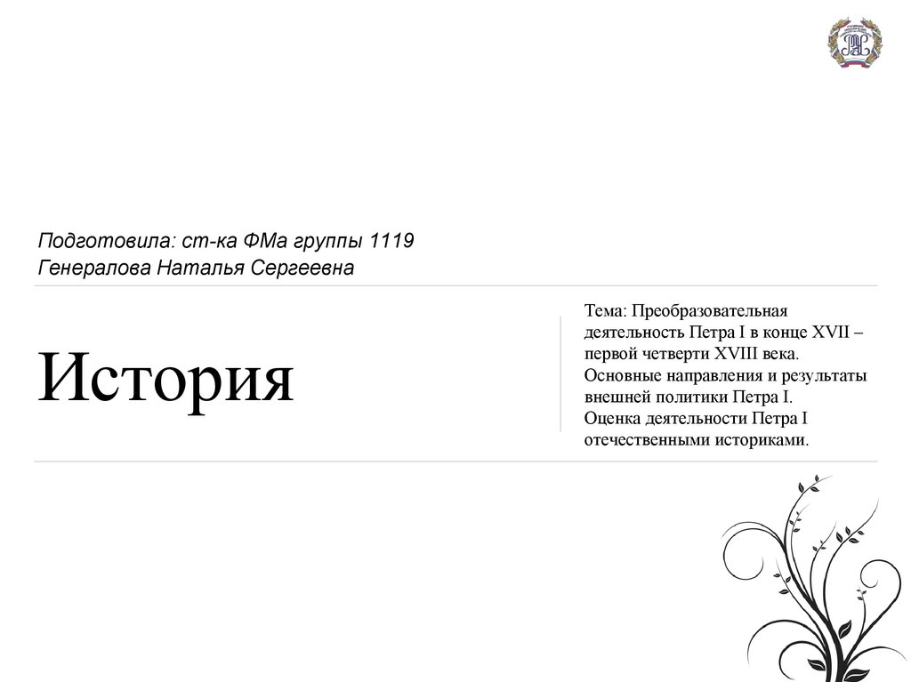 Подготовила: ст-ка ФМа группы 1119Генералова Наталья Сергеевна