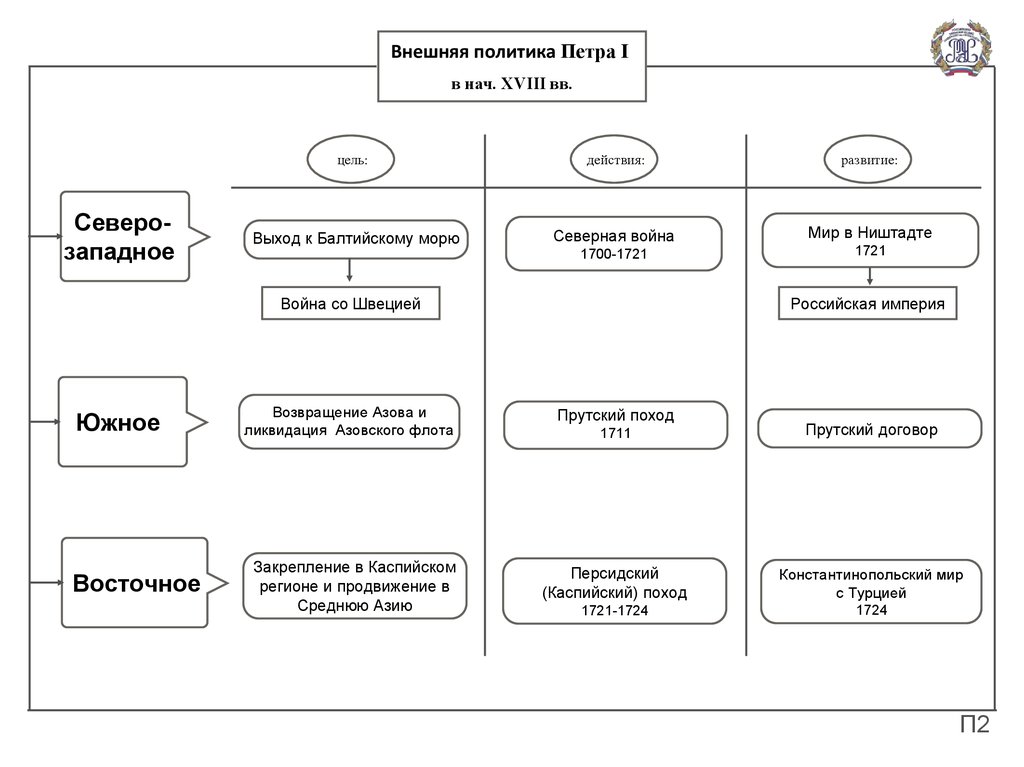 2. Основные направления и результаты внешней политики Петра I;