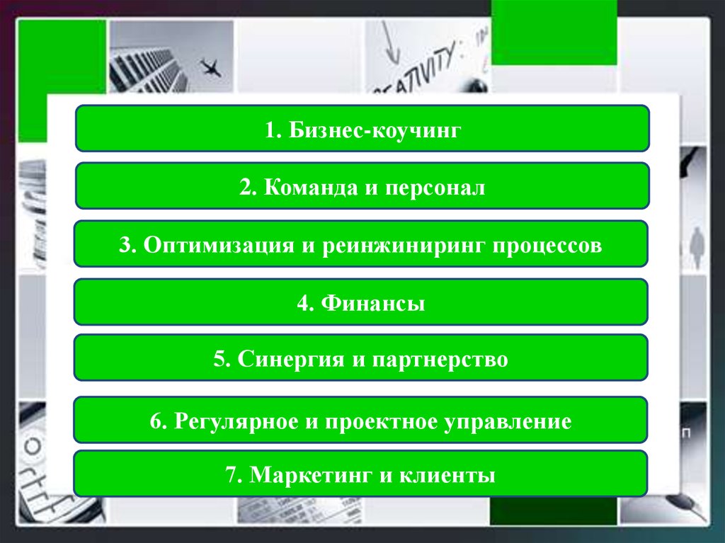 1. Бизнес-коучинг2. Команда и персонал