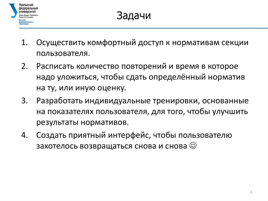 Задачи1. Осуществить комфортный доступ к нормативам секции