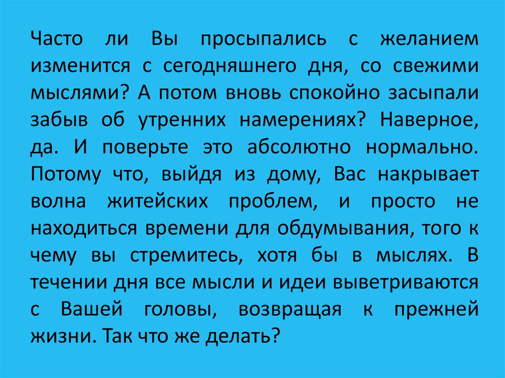 Часто ли Вы просыпались с желаниемизменится с сегодняшнего дня, со свежими