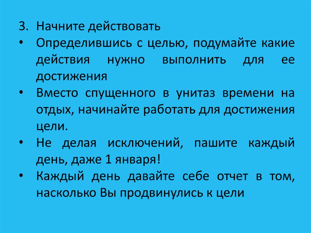 2. Определите что Вам мешает этого достичь:• Проведите еще один привычный для Вас