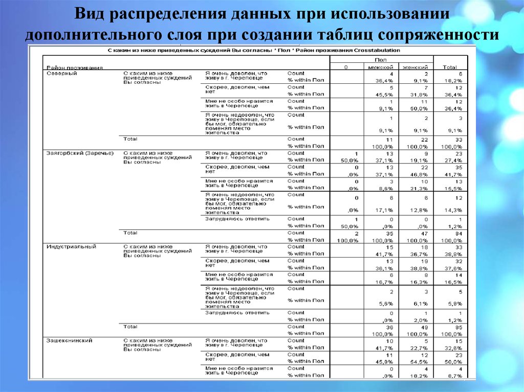 Вид распределения данных при использованиидополнительного слоя при создании таблиц сопряженности