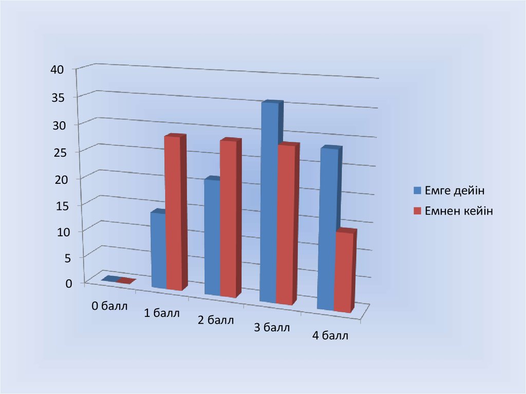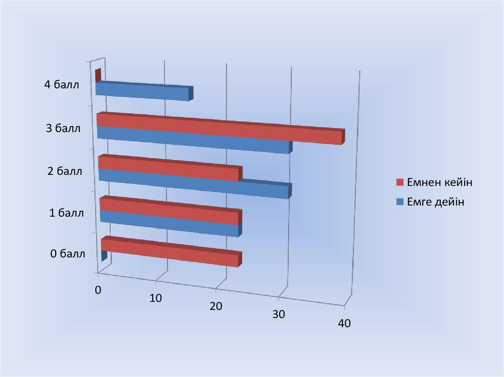 кейін : 0 балл – 23,1%, 1 балл – 23,1%, 2 балл – 23,1%, 3