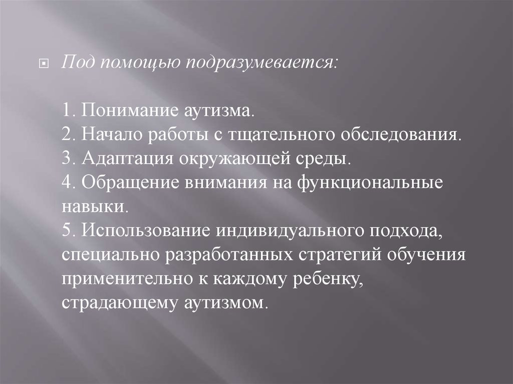 Под помощью подразумевается:1. Понимание аутизма.