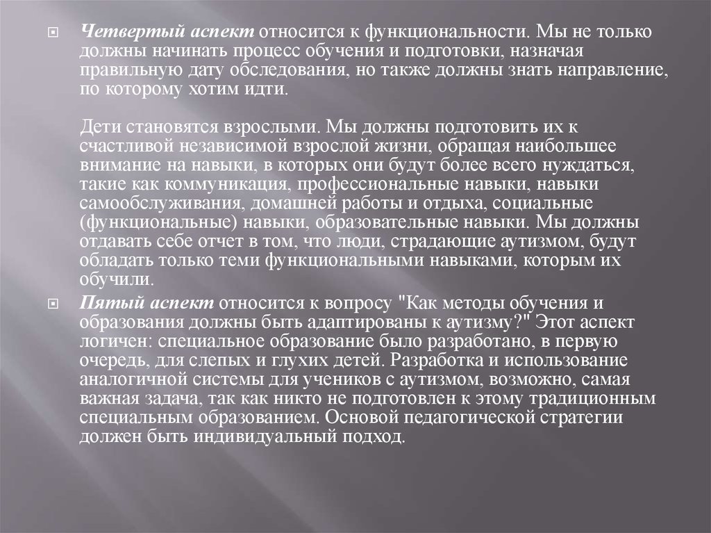 страдающего аутизмом. Это необходимо в связи с трудностью