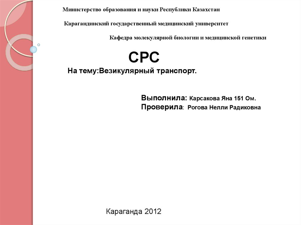 Министерство образования и науки Республики КазахстанКарагандинский государственный медицинский университет