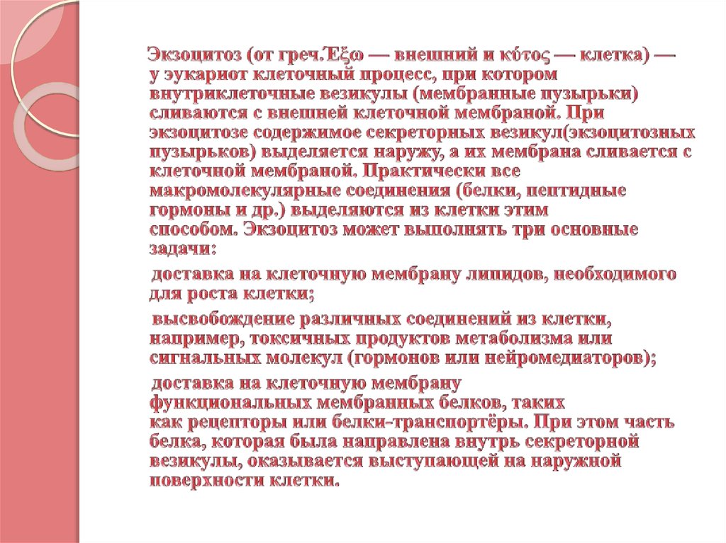 Секре́ция — это процесс выделения химическихсоединений из клетки. В отличие от собственно