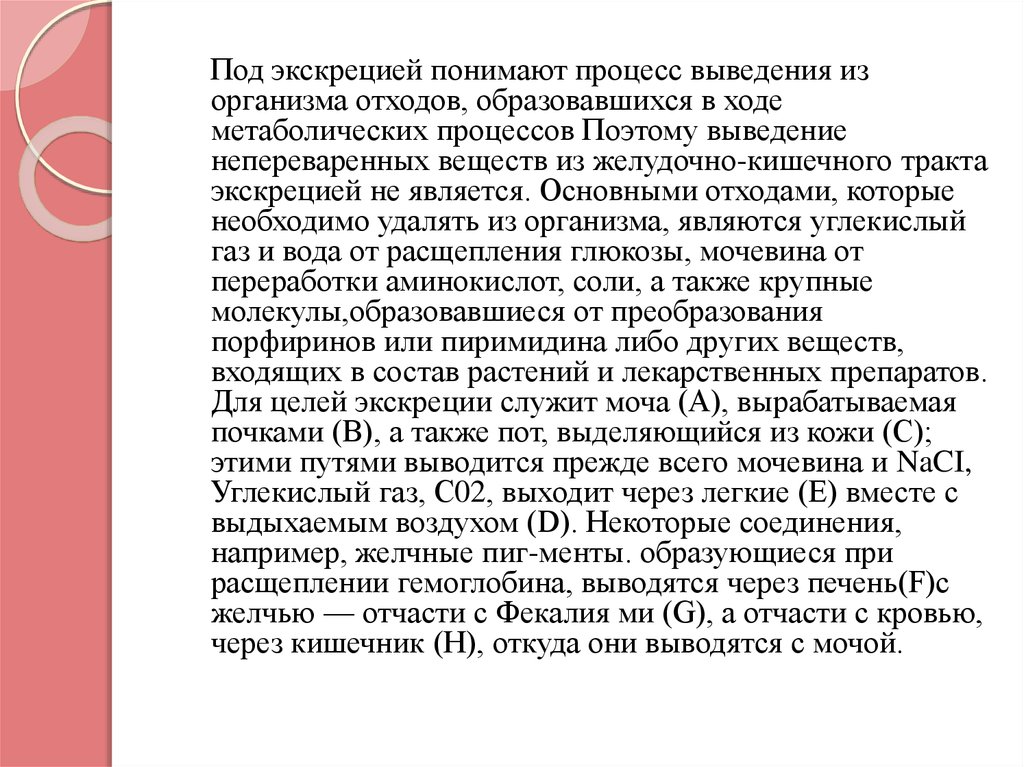 Под экскрецией понимают процесс выведения изорганизма отходов, образовавшихся в ходе