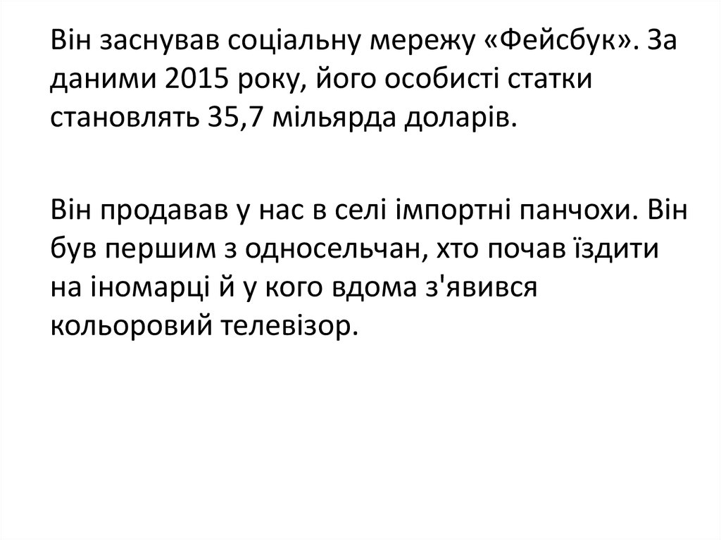 Він заснував соціальну мережу «Фейсбук». Заданими 2015 року, його особисті статки