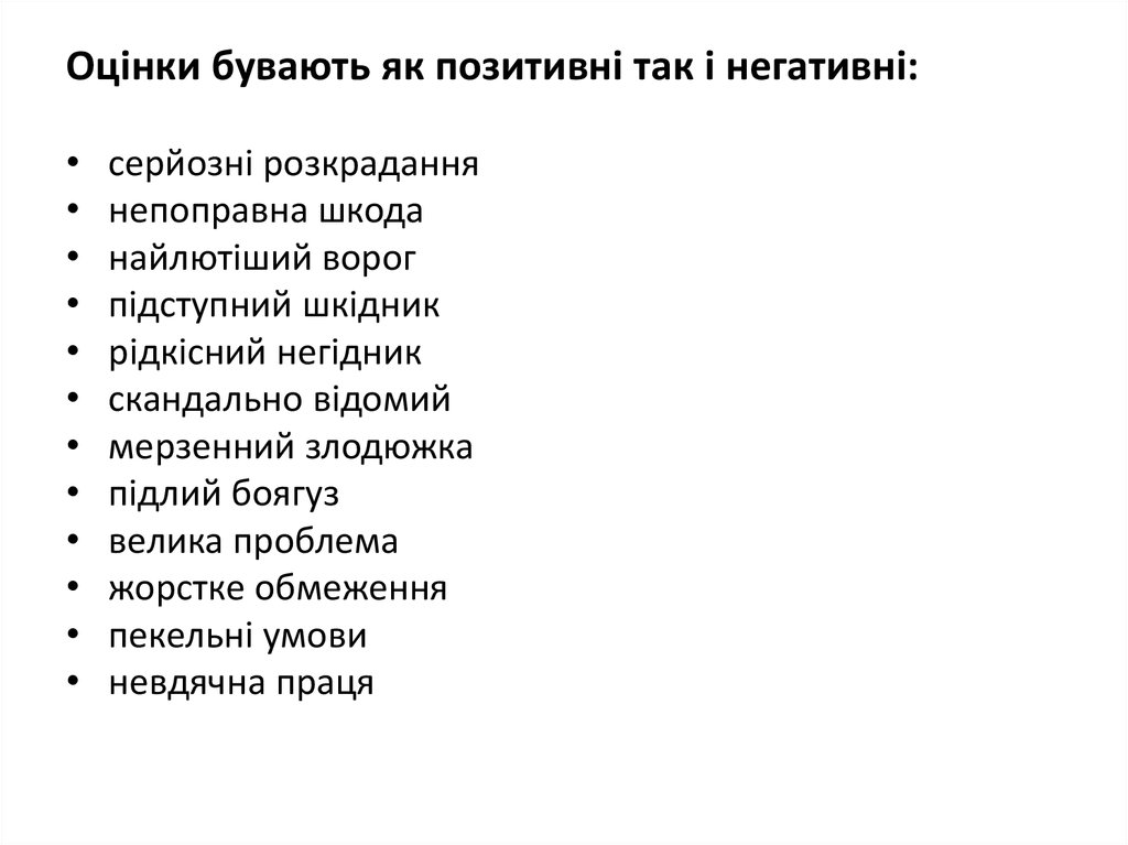 Треба з обережністю ставитися до будь-якогоприкметника: чи не виражає він необ'єктивну