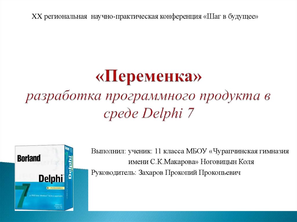 1. «Переменка» разработка программного продукта в среде Delphi 7