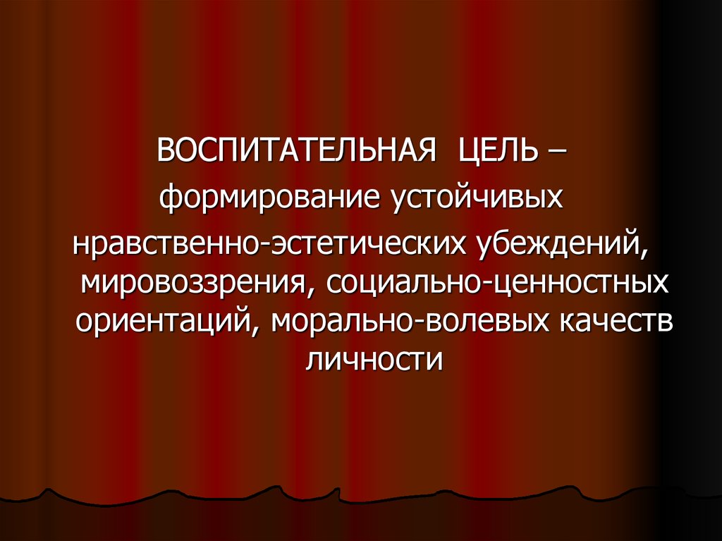 ВОСПИТАТЕЛЬНАЯ ЦЕЛЬ –формирование устойчивых