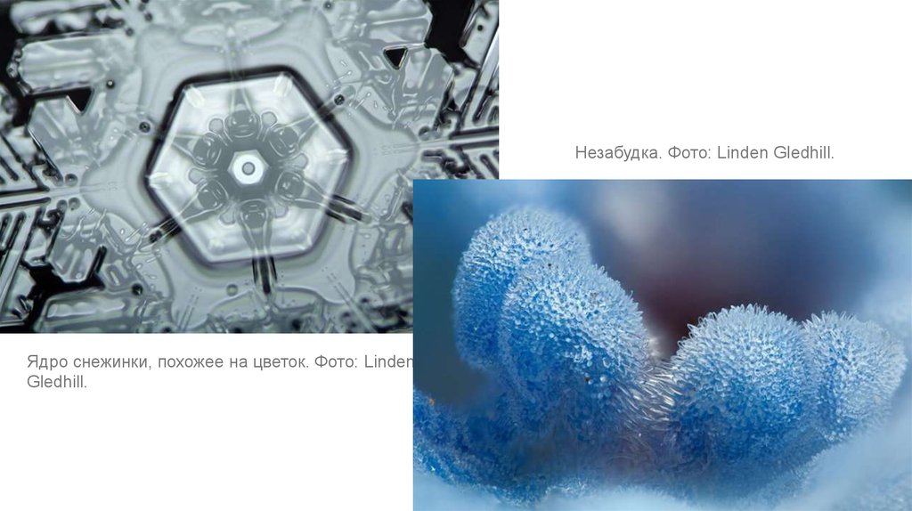 Незабудка. Фото: Linden Gledhill.Ядро снежинки, похожее на цветок. Фото: Linden