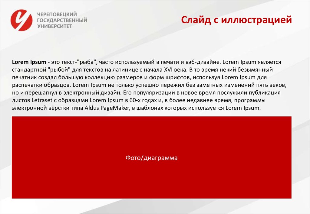 Слайд с текстомLorem Ipsum - это текст-"рыба", часто используемый в печати и вэб-дизайне. Lorem Ipsum является стандартной