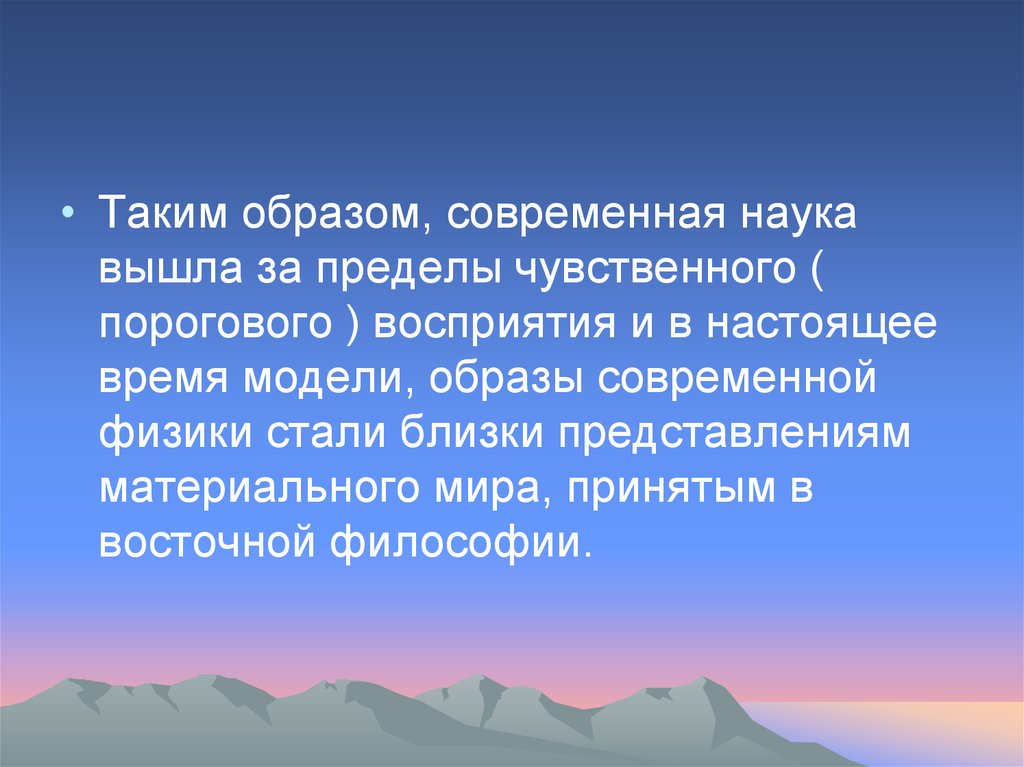 • В отличие от западных, механистических воззрений восточныефилософы рассматривают все предметы и явления как